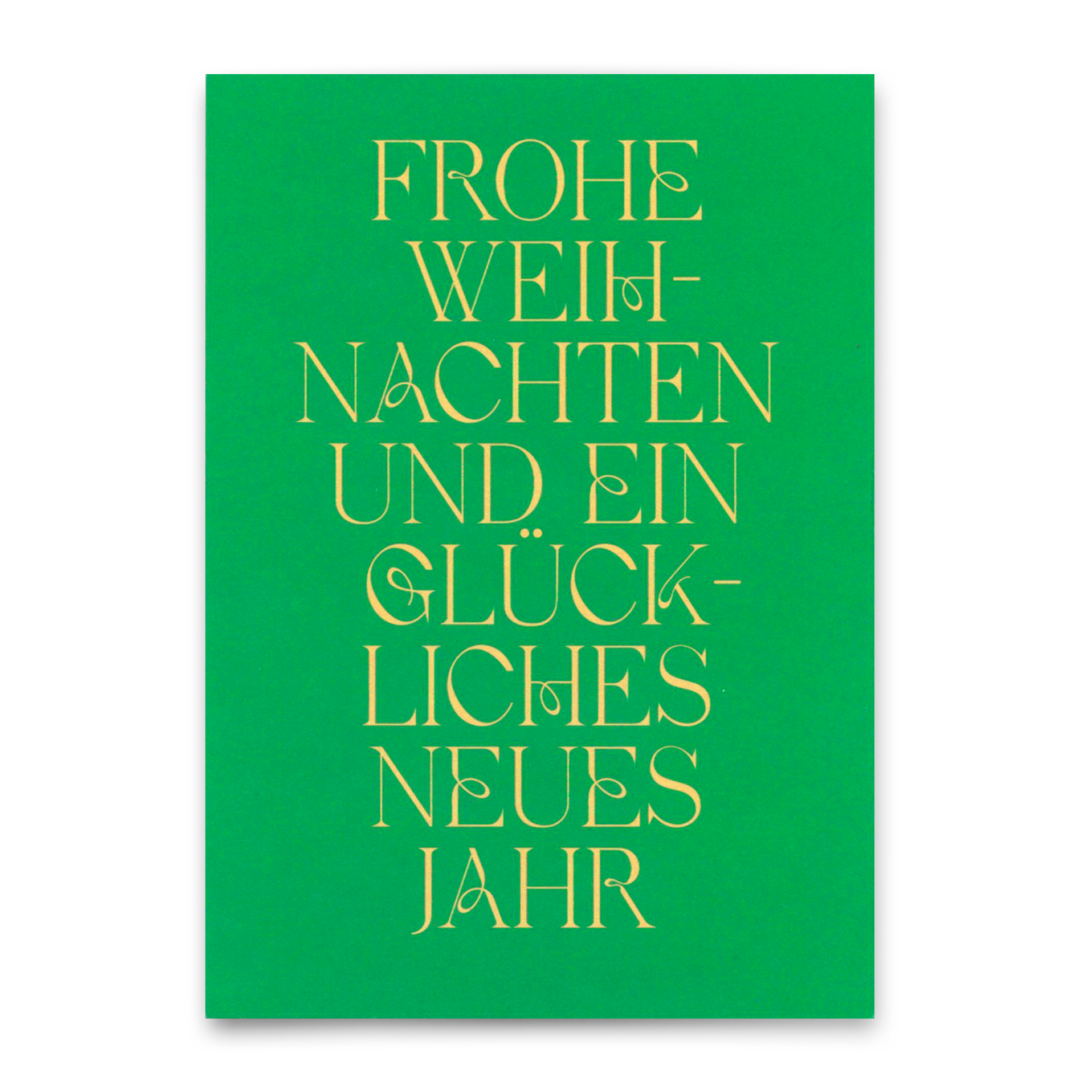 Unsere Weihnachtskarte „Frohe Weihnachten und ein glückliches neues Jahr“ kommt ganz schön festlich daher. Sie ist nicht nur farblich absolut Weihnachten, wir haben auch typografisch ganz tief in der Weihnachtskiste gekramt und das ganze aufs Papier gebracht. Ganz schön schick, oder?