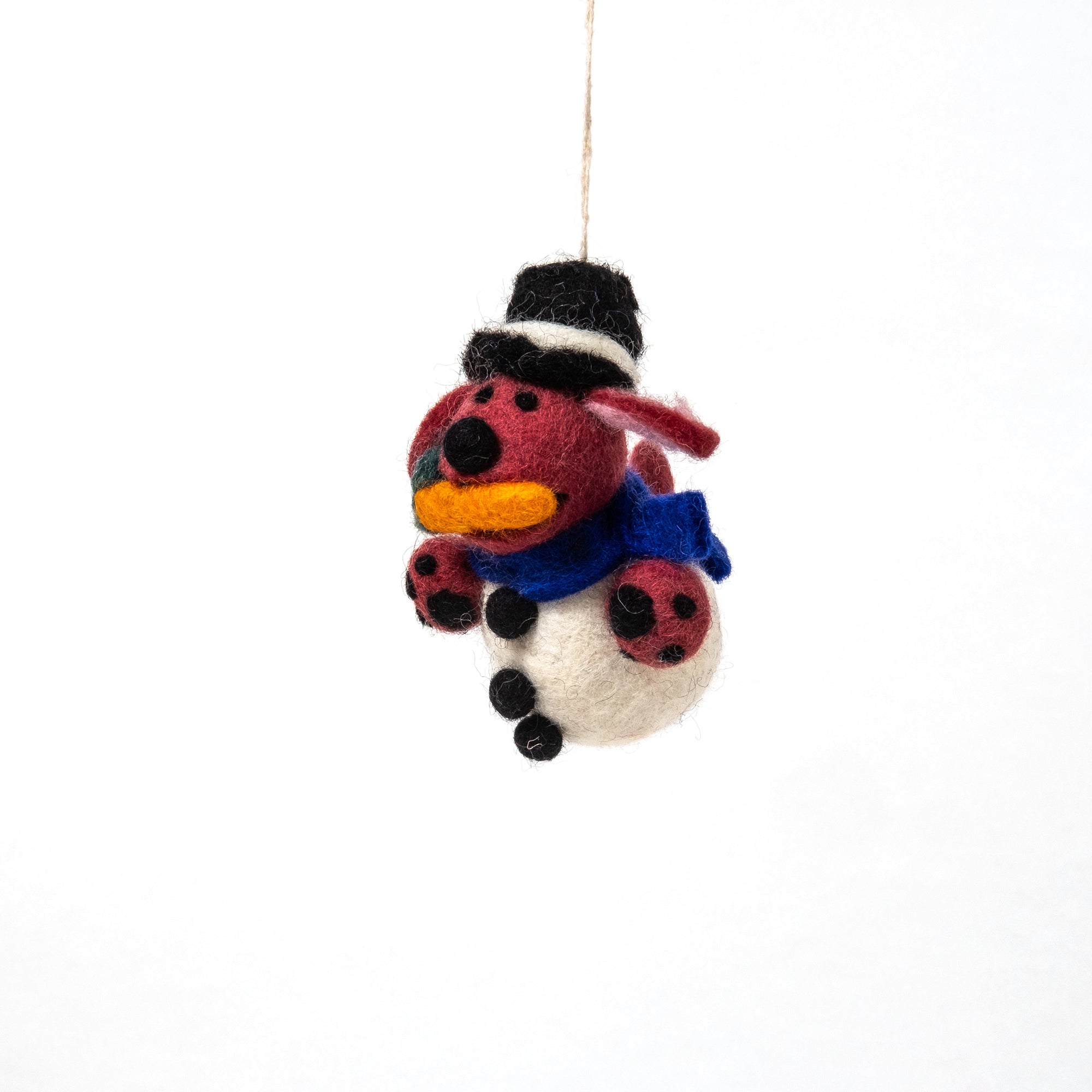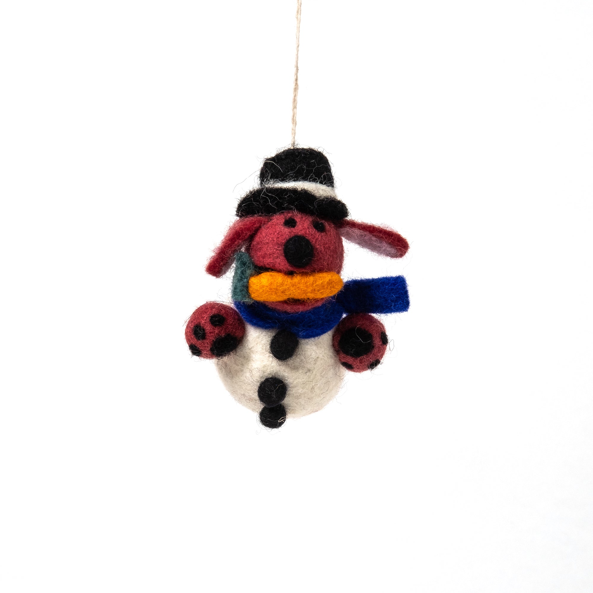 Filzanhänger WRAP “Barky, the Snowboy” | Schneemannfigur aus Filz für den Baum