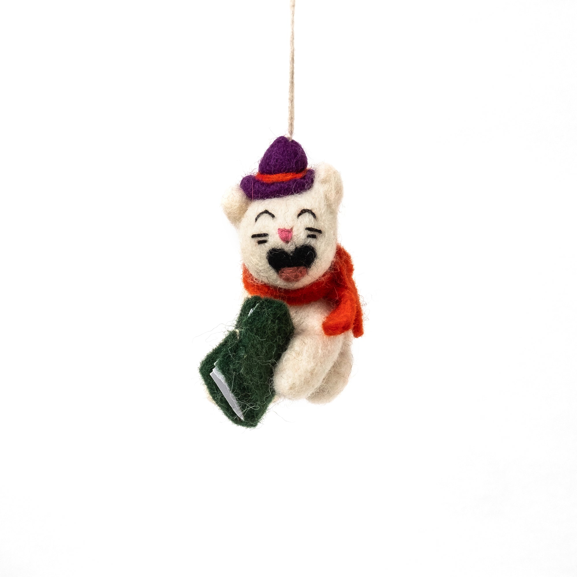 Filzanhänger WRAP “Dickens, Carolling Cat” | Handgemachte Deko aus Filz