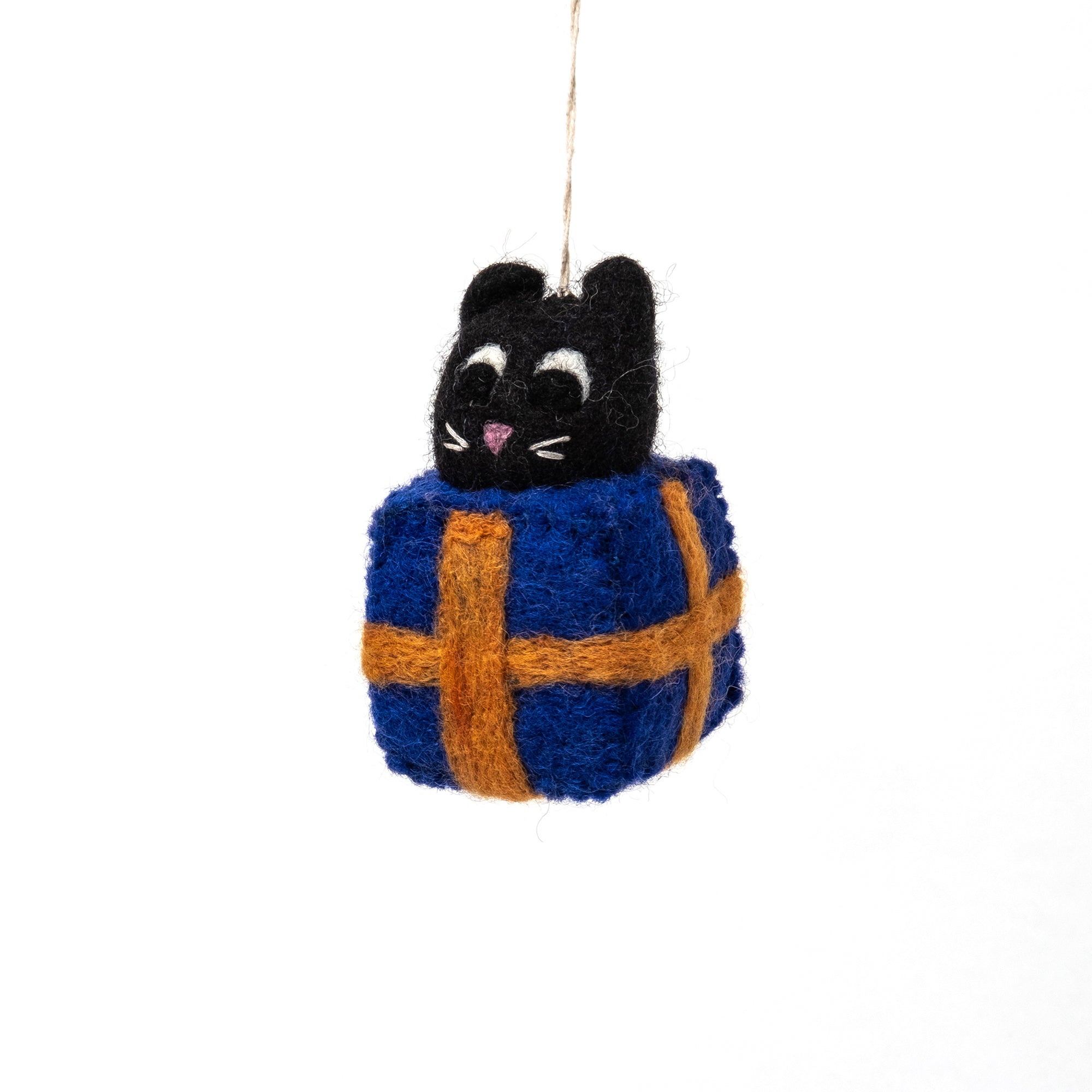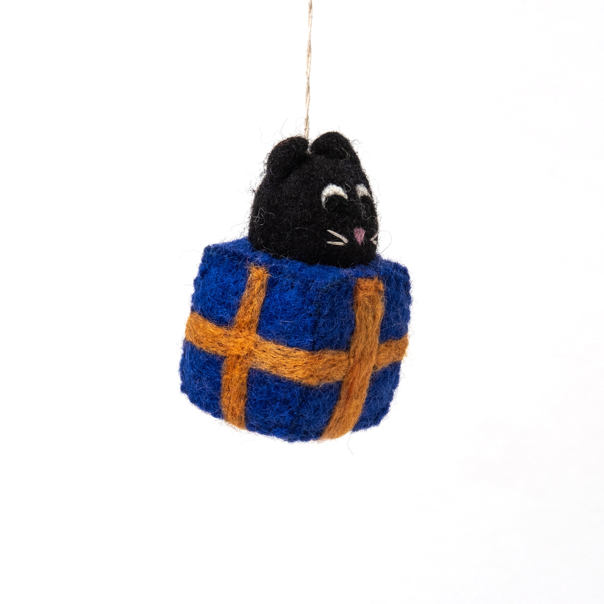 Filzanhänger WRAP “Roland, Cat in a Box” | Filzanhänger mit Katze im Geschenkpaket