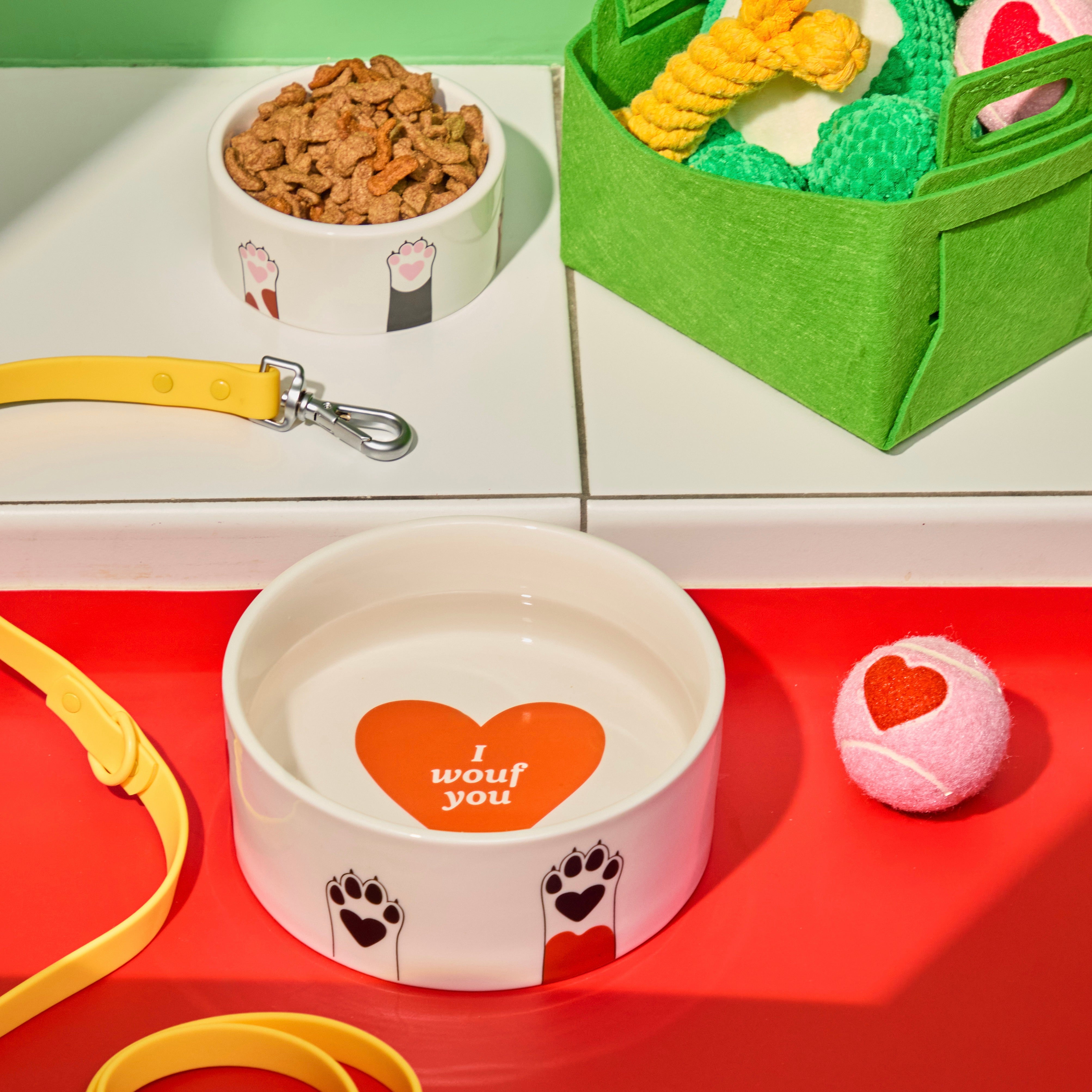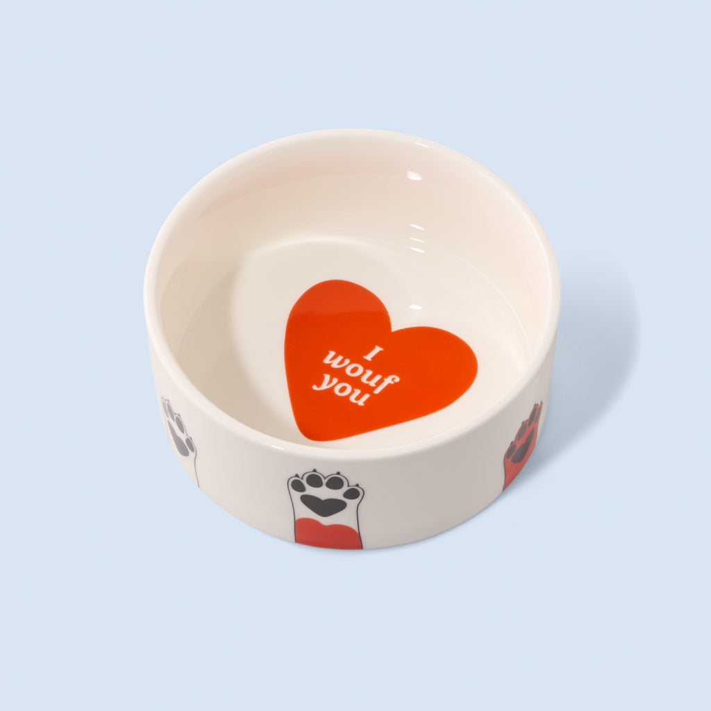 Der Futternapf „Dog Paws“ kombiniert praktische Funktion mit einem augenzwinkernden Design für Hunde. Die grafischen Pfotenmotive außen und das Herzdetail im Inneren sorgen für einen sympathischen Look, der über klassische Tiernäpfe hinausgeht. Ideal für alle, die auch beim Hundezubehör Wert auf Gestaltung legen.