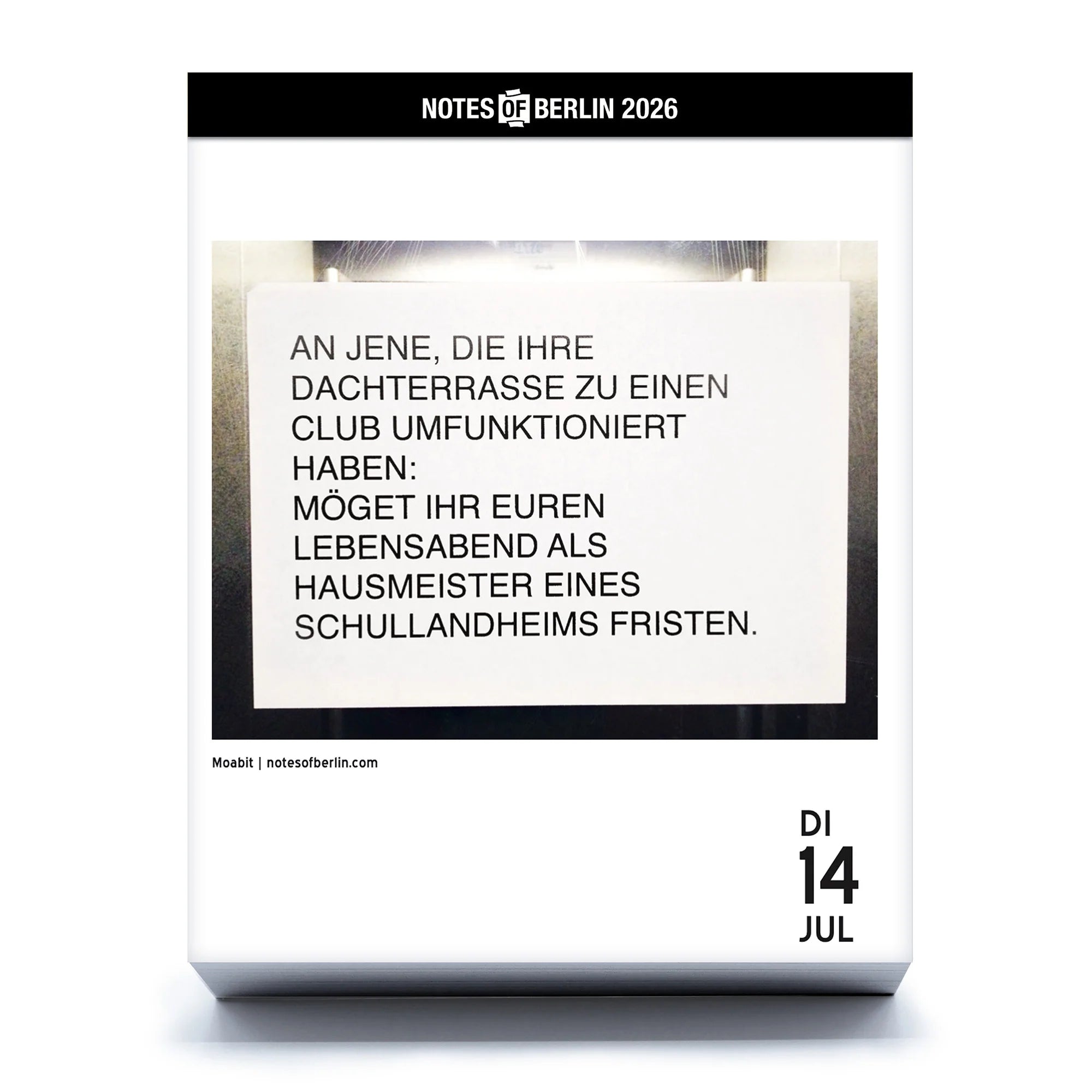 Berlin lesen, abreißen, erleben: Notes of Berlin 2026 sammelt visuelle, typografische & fotografische Fundstücke der Hauptstadt. Jeden Tag ein Stück Berlin – geschrieben, geklebt, entdeckt.