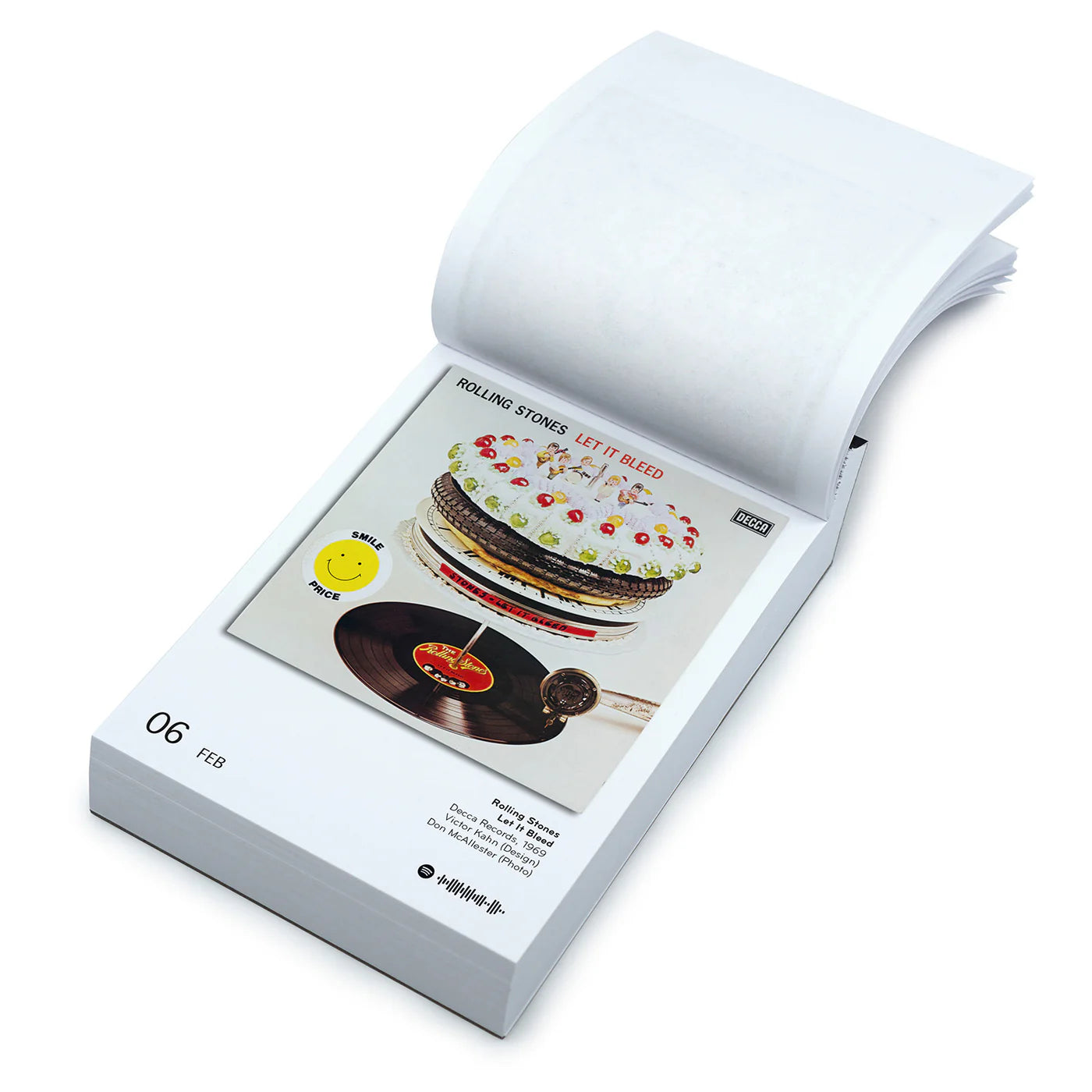 Stürmisches Gitarrenfeuer jeden Tag: Rock Covers Vol. 1 bietet 365 weltbekannte Rock Vinylcovers in einem Kalenderformat – von den Beatles bis AC/DC. Jeder Tag ein Klassiker, jede Seite ein Design Statement. Inklusive Spotify Code für deine persönliche Rocksession.