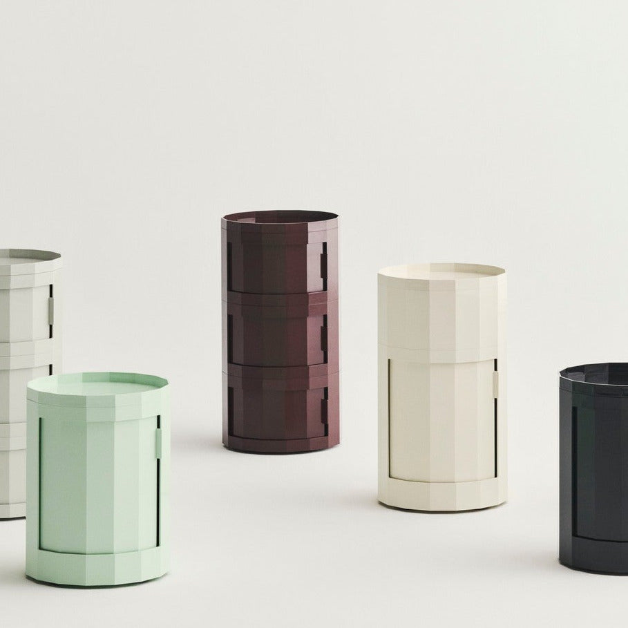 Das Facet Cabinet 30 ist ein vielseitiges Aufbewahrungsmöbel mit klarer Form und markanter Farbe. Burgundy setzt einen selbstbewussten Akzent, ohne aufdringlich zu wirken. Dank integrierter Drehtür und unauffälliger Rollen lässt sich der Container flexibel einsetzen – als Nachttisch, Beistellmöbel oder Organizer im Homeoffice.