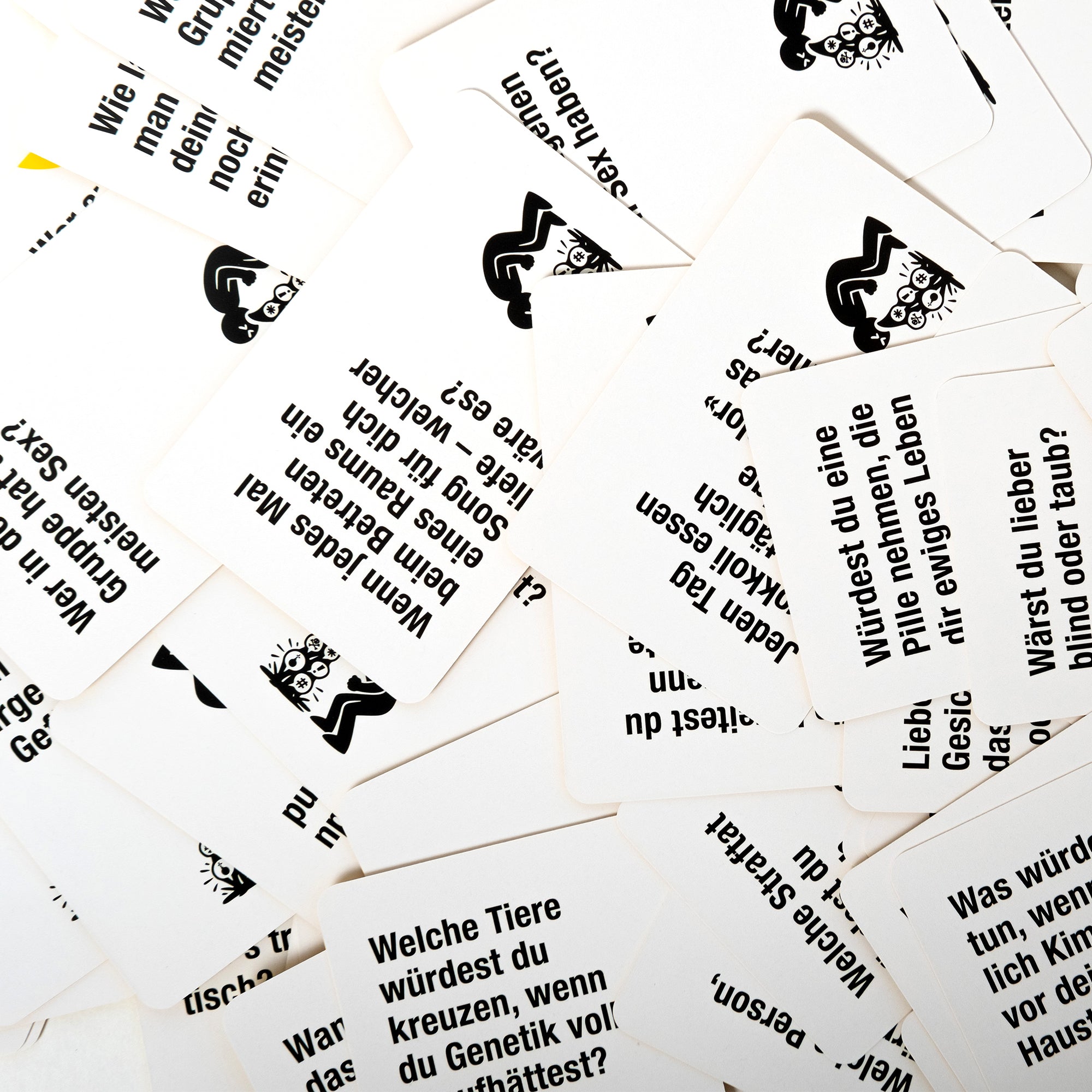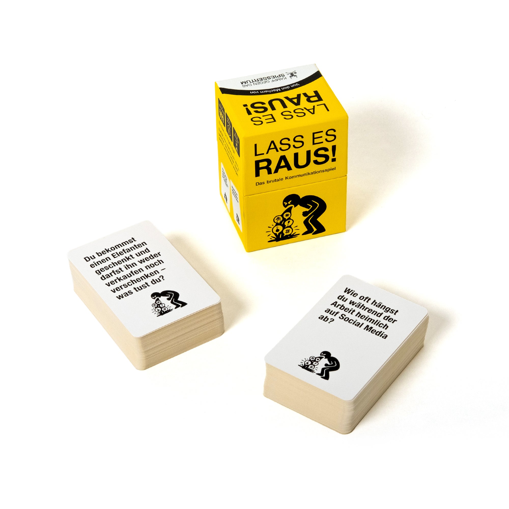 LASS ES RAUS! ist das Kartenspiel, das Oberflächen sprengt und Gespräche entfacht, die man sonst nie führen würde. Mit 148 tiefgehenden, schrägen und manchmal herrlich dreckigen Fragen bringt dieses Spiel die ehrliche, charmante und überraschende Seite jedes Teilnehmers ans Licht.