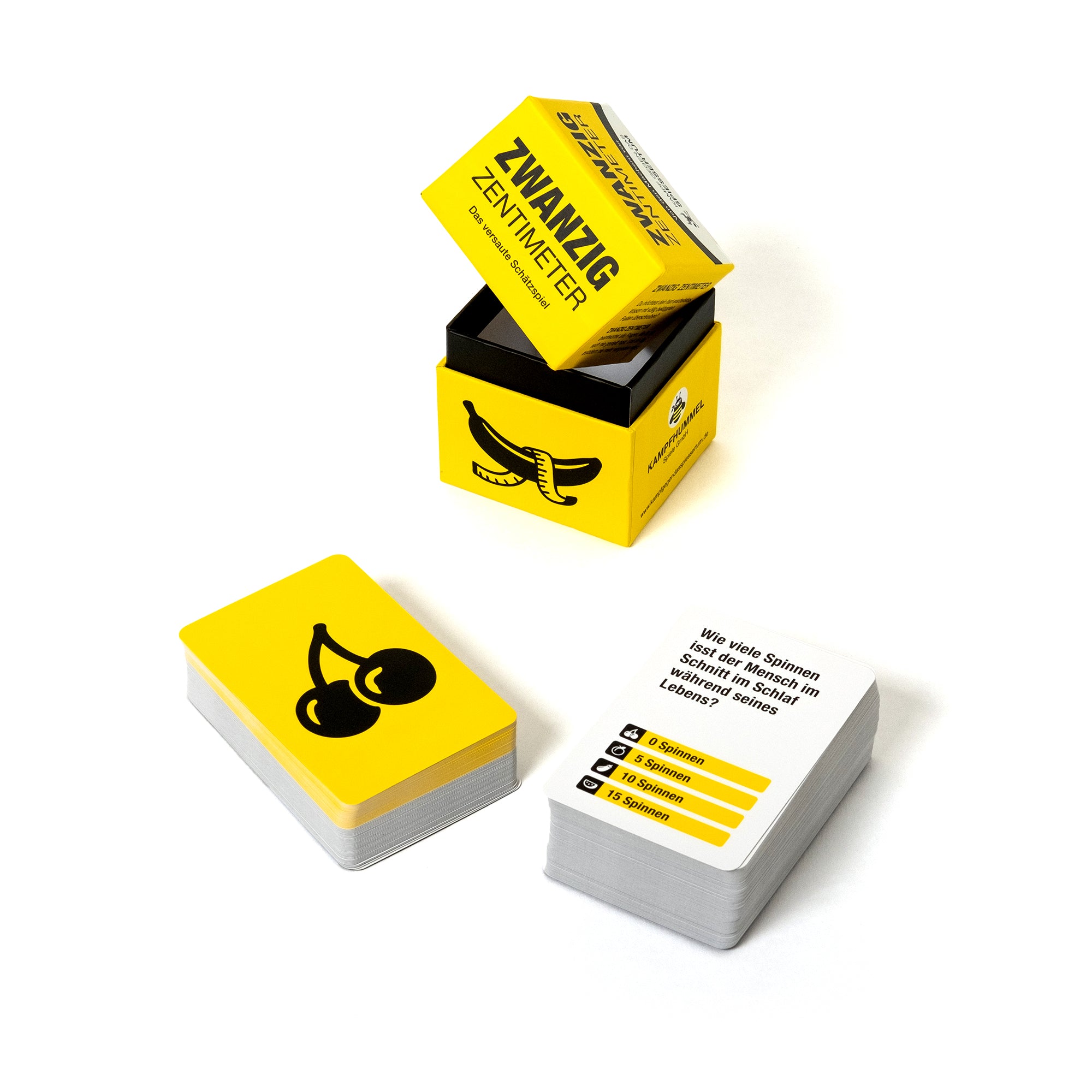 Bereit, dein mühsam angesammeltes Wissen mit völlig bekloppten Fakten zu überschreiben? Zwanzig Zentimeter ist das freche Partyspiel für alle, die lachen wollen, ohne Rücksicht auf logische Grenzen. Dieses pointierte Quizkartenspiel beantwortet Fragen, die du dir garantiert noch nie gestellt hast – die du aber trotzdem nie wieder vergessen wirst.
