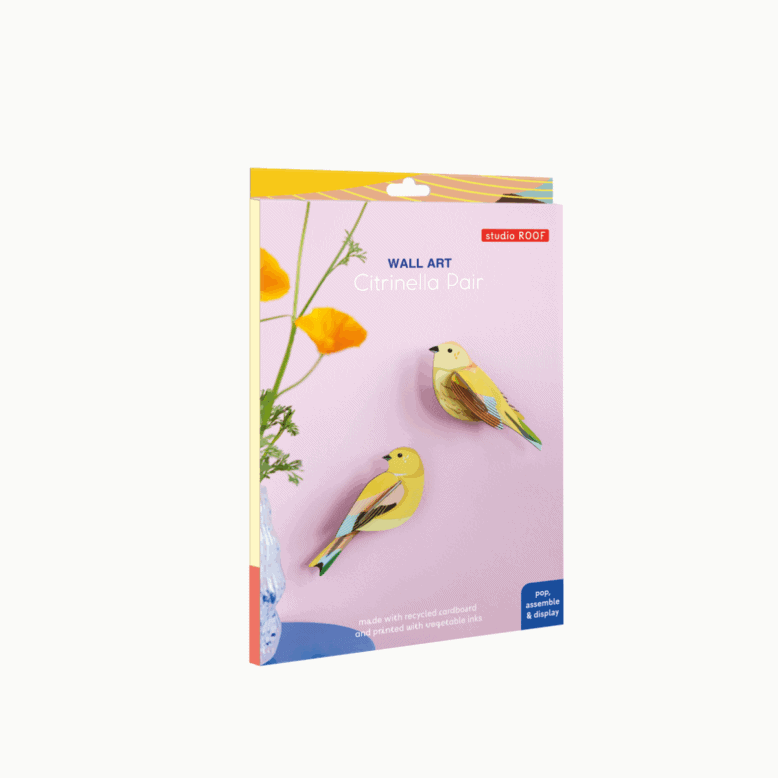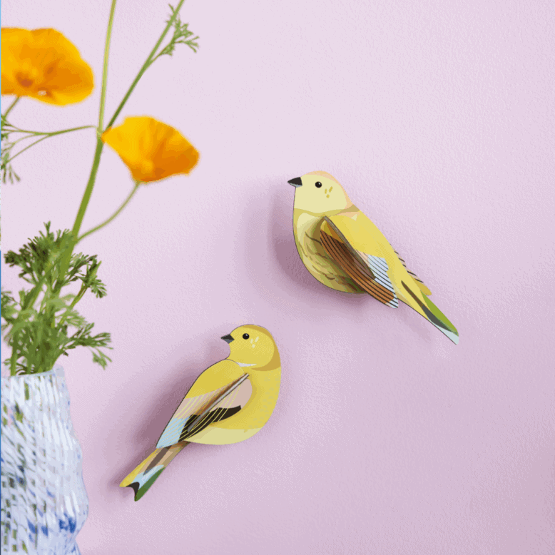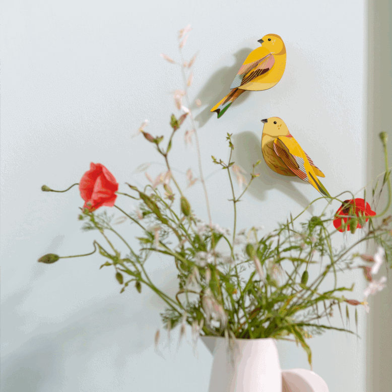 Wanddeko studio ROOF “Citrinella Pair” | Gelbes Vogelduo aus Karton