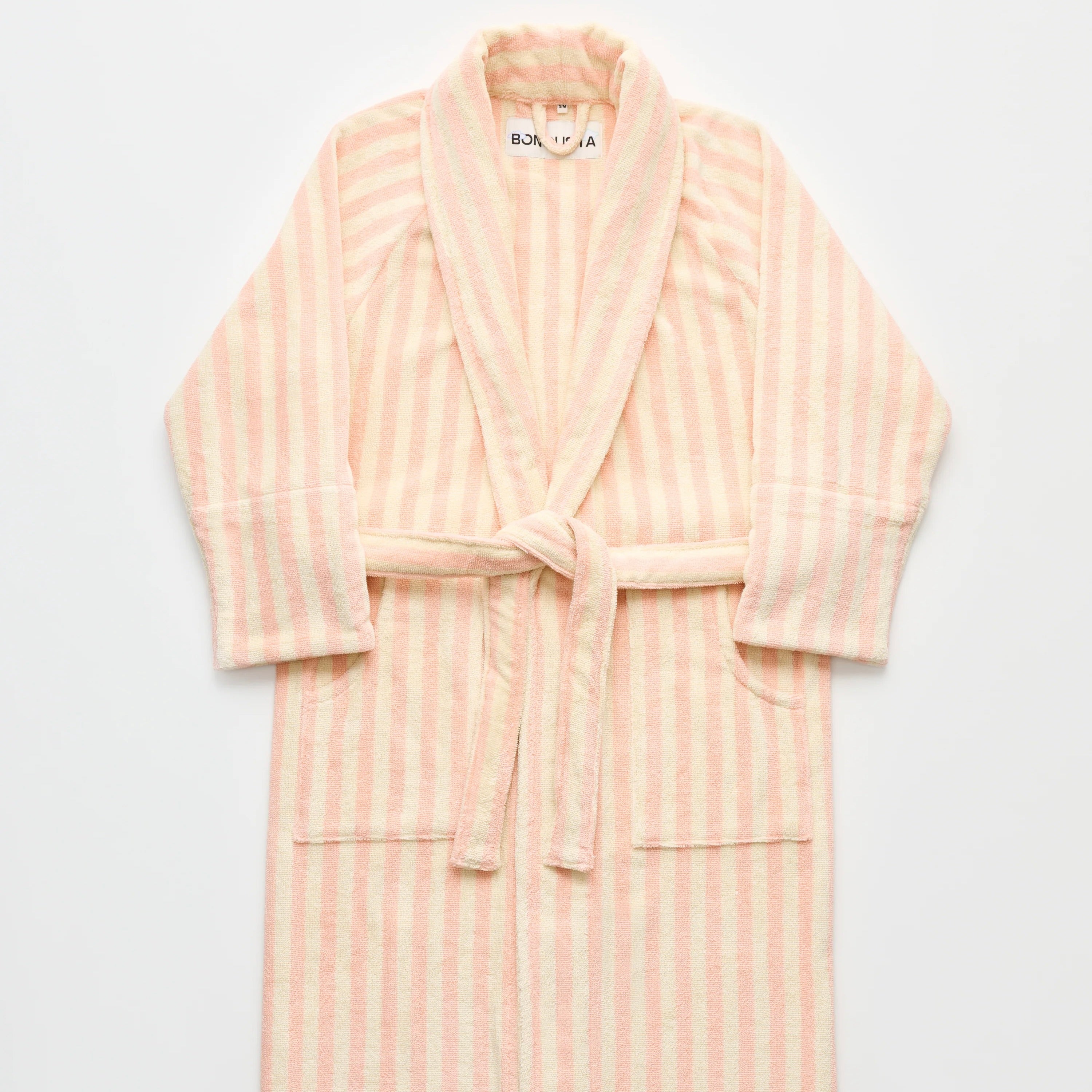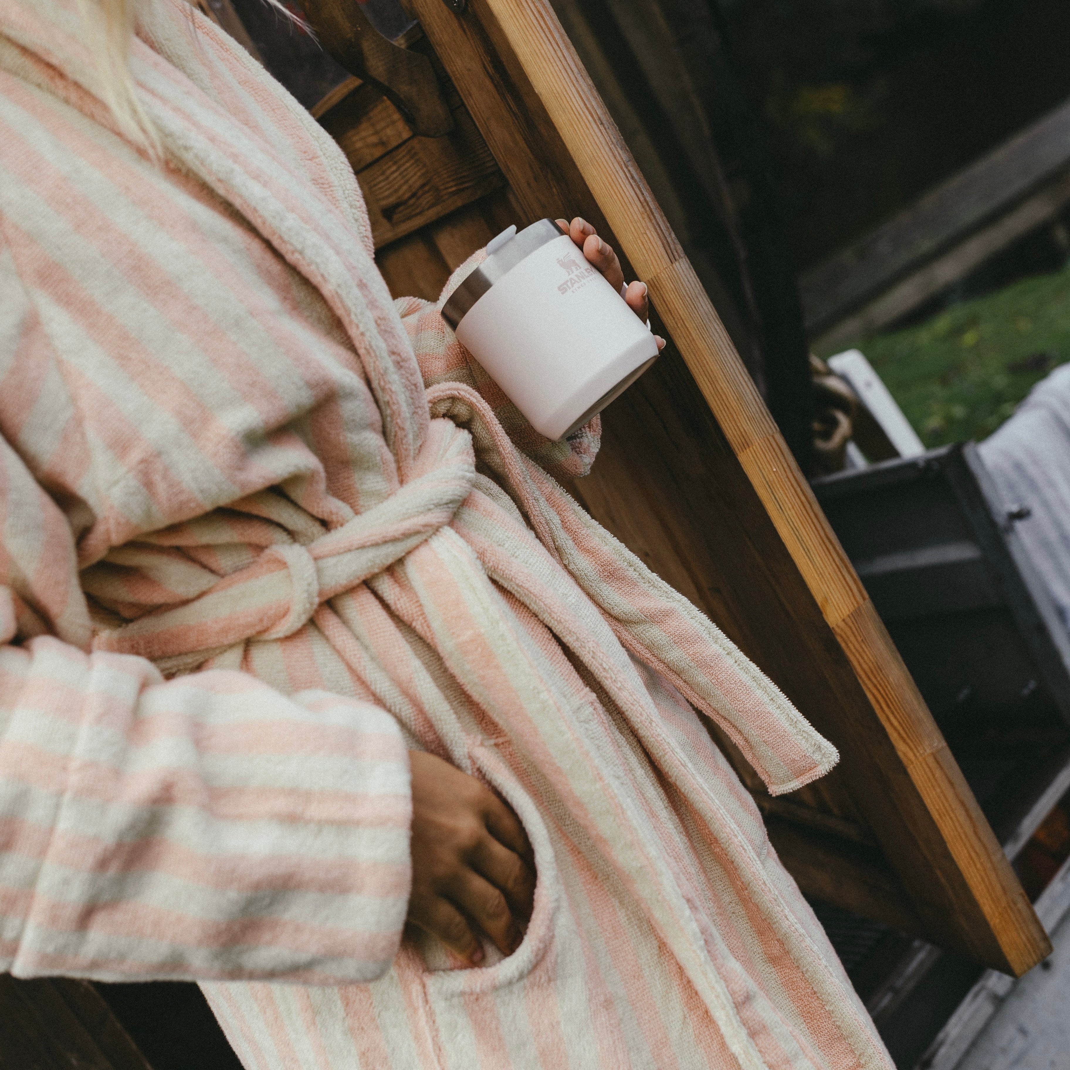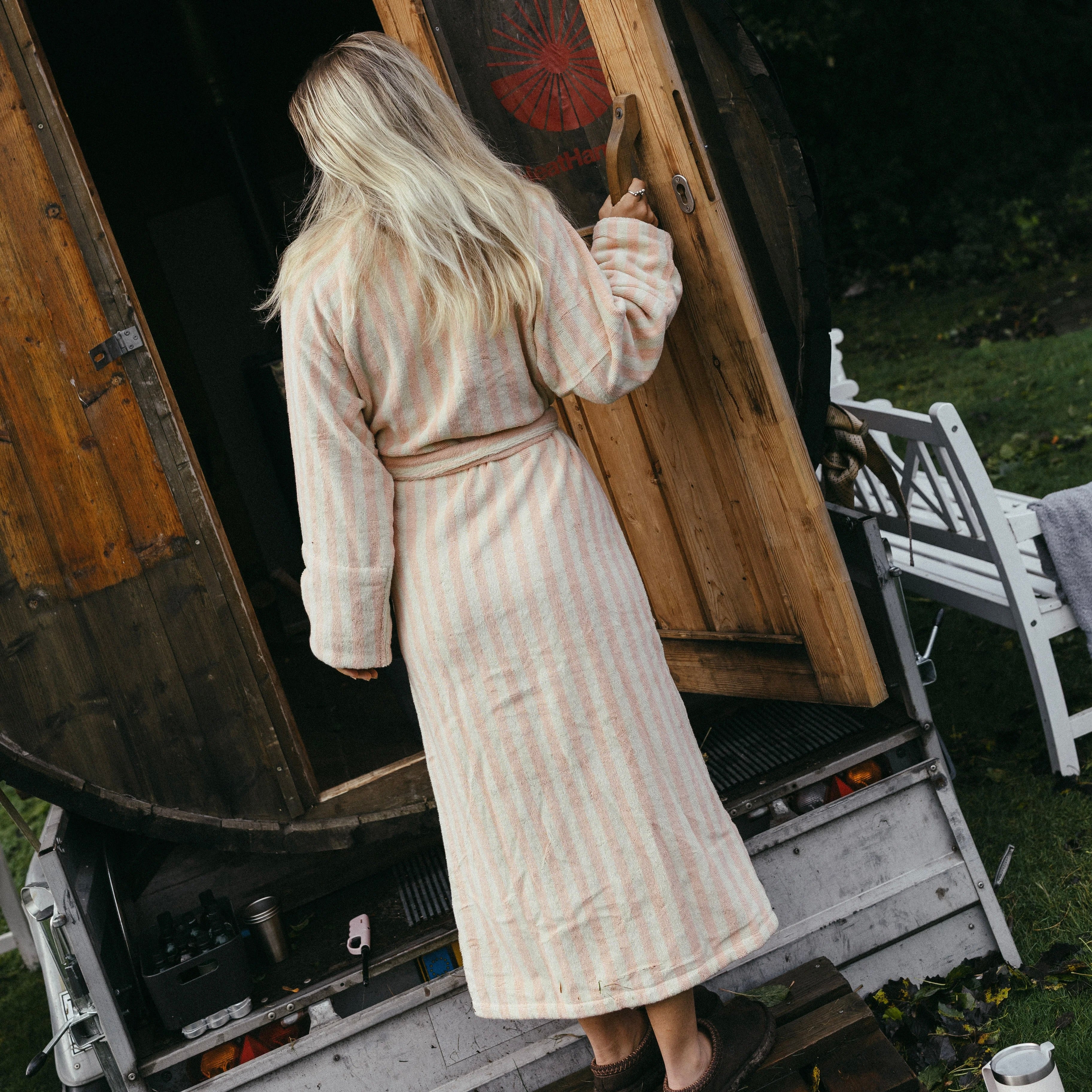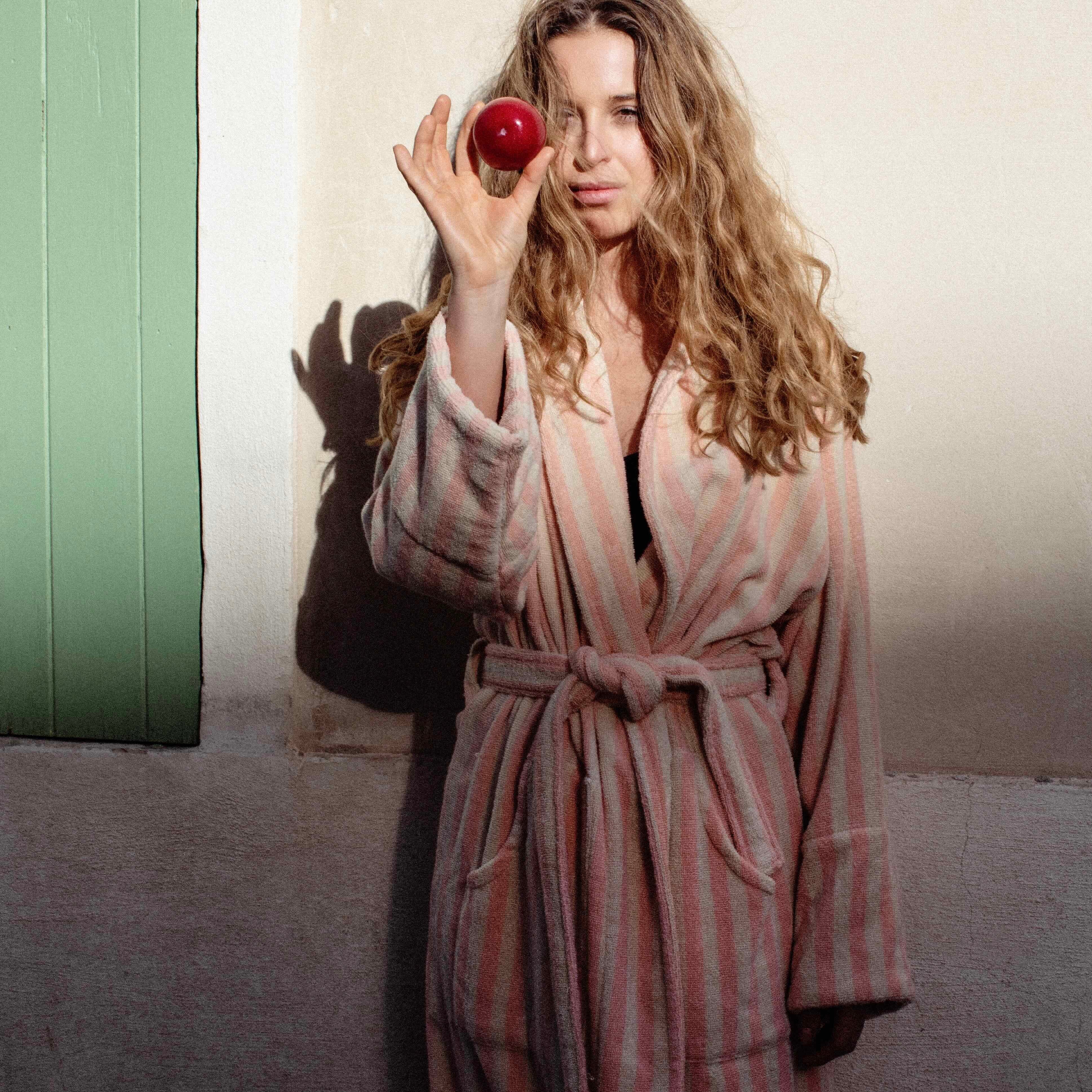 The Naram bathrobe is just right for slow mornings, long evenings, and everything in between. It is wonderfully soft, oversized, and feels great on the skin thanks to organic cotton. Tropical & Cream bring a fresh, calming color palette to your bathroom or sofa. Simply slip it on, tie the belt, and relax.