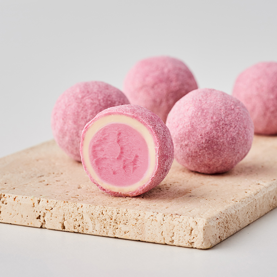 Fruity, fresh, and delicately tart: The Raspberry Fizz Truffles combine a light ganache with intense raspberry puree, enveloped in white chocolate and pink popping candy. A lively truffle that perfectly balances fruit and chocolate.
