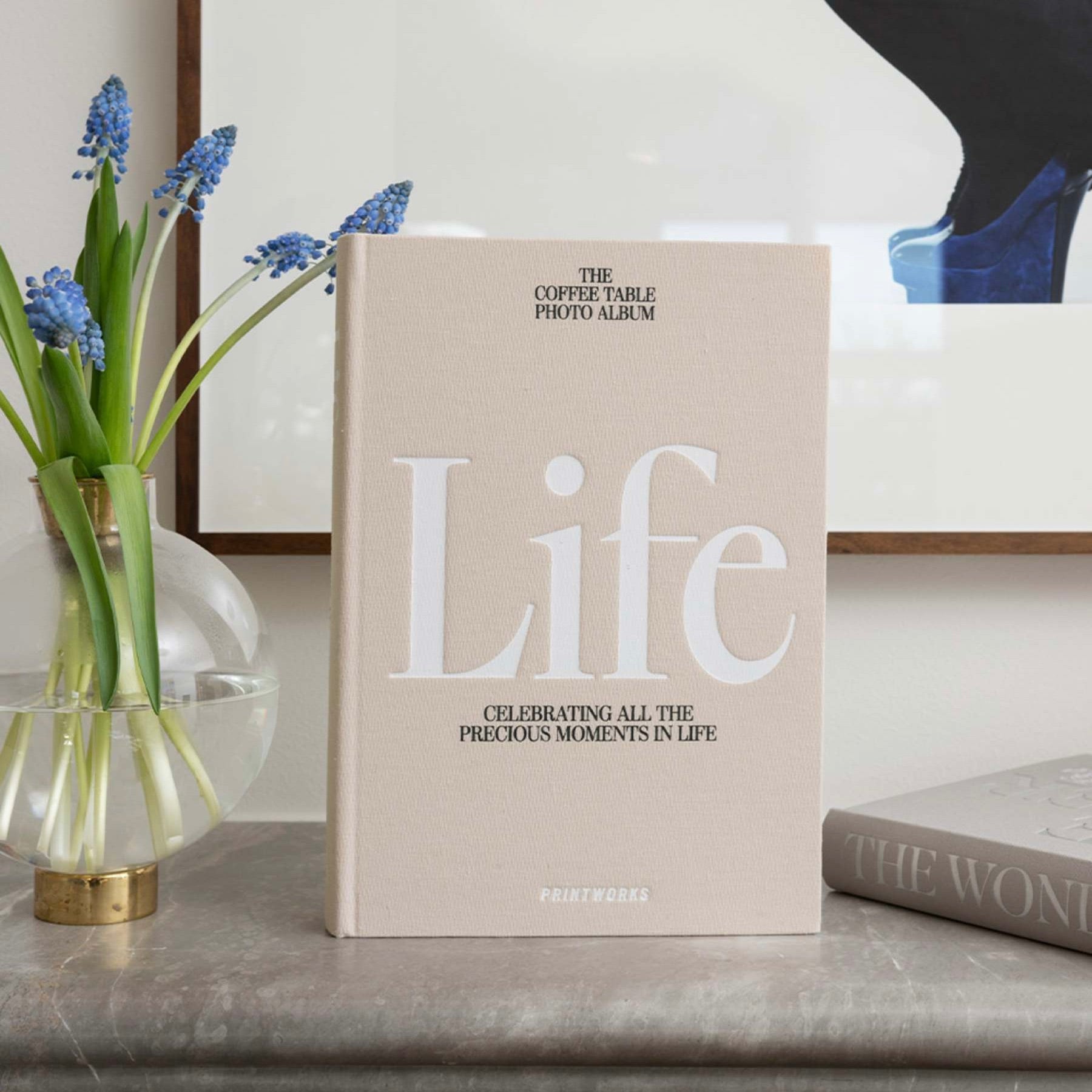 Life in a book. "Life" is PRINTWORKS' best-selling photo book - and for good reason. With its elegant 28 x 19 cm hardcover design, covered in beige fabric with white typography, it blends seamlessly into the bookshelf and looks like a stylish coffee table book. An album for everyday moments, milestones, and everything in between.