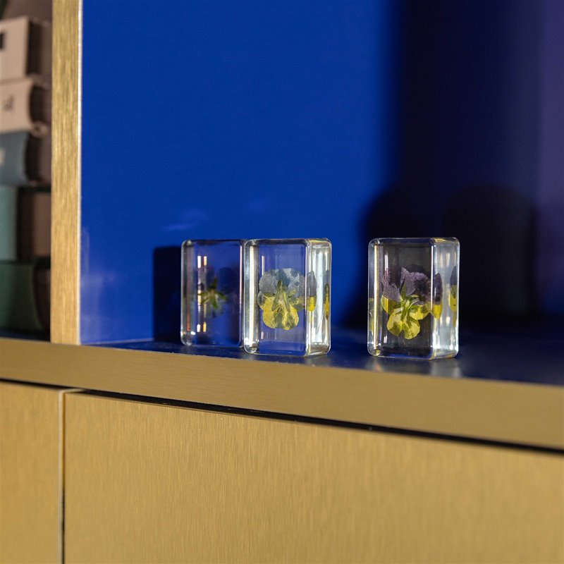 Der Cube „Violet“ ist ein kleines Kunstwerk für dein Zuhause. In klarem Resin eingefasst, schwebt eine echte Blume dauerhaft in ihrer schönsten Form – ganz ohne Pflege. Ob auf dem Sideboard, im Regal oder als liebevolles Detail auf dem Nachttisch: Dieser dekorative Block bringt Natur, Farbe und Ruhe in jeden Raum. Minimalistisch, poetisch und absolut zeitlos.