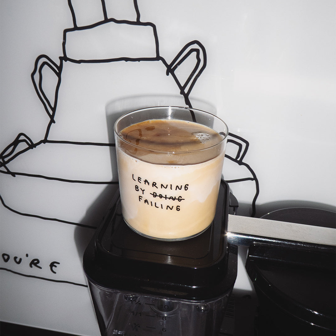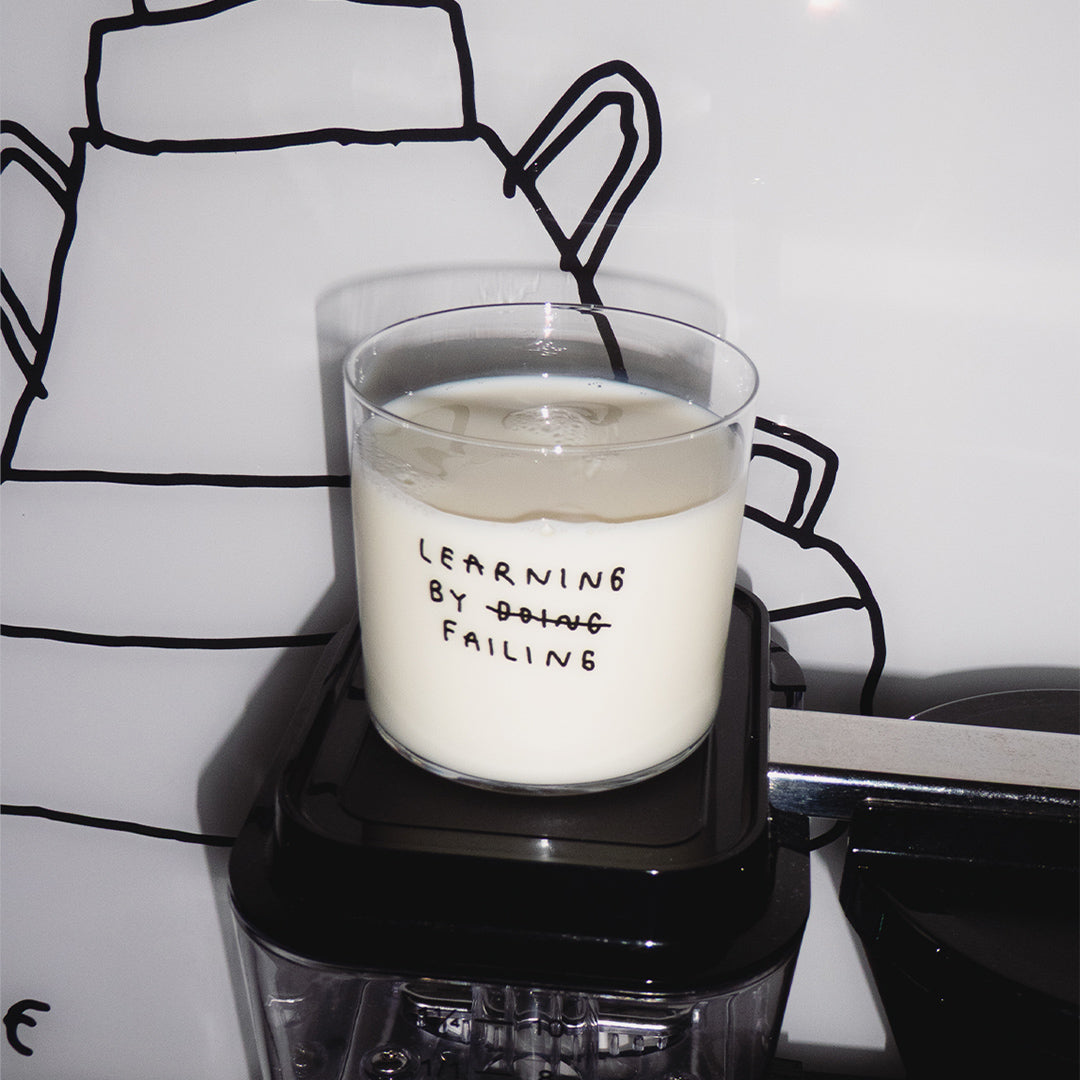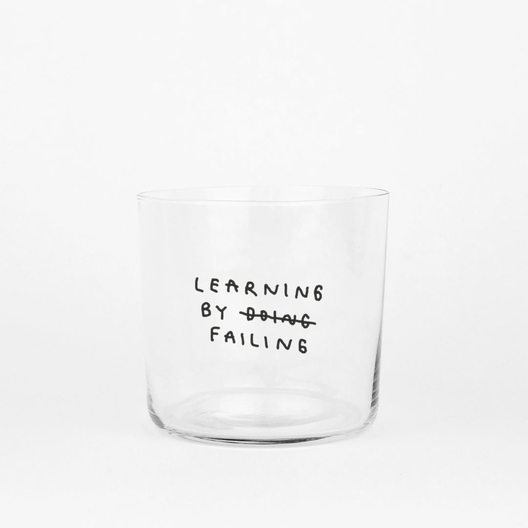 Glas "Learning by Failing" | Weise Typo auf Glas | YAHYA Studio