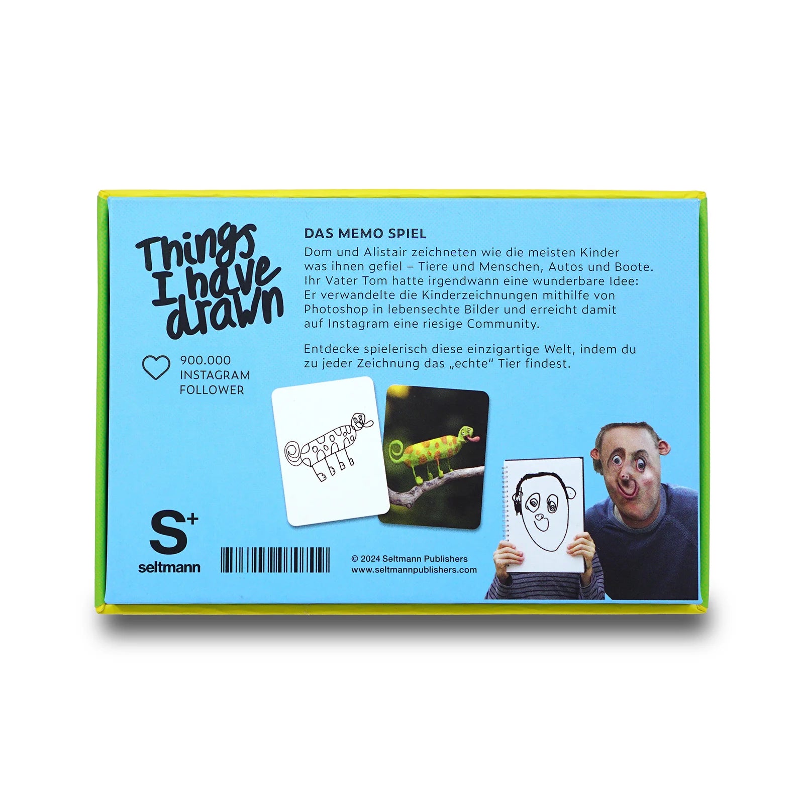 Dieses Memo-Spiel basiert auf den Zeichnungen eines Kindes, die von seinem Vater in realistische Bilder übersetzt wurden. Das Spiel lebt vom Kontrast zwischen kindlicher Fantasie und realistischer Umsetzung. So entsteht ein ungewöhnliches Memory-Spiel mit Humor und Überraschungseffekt.