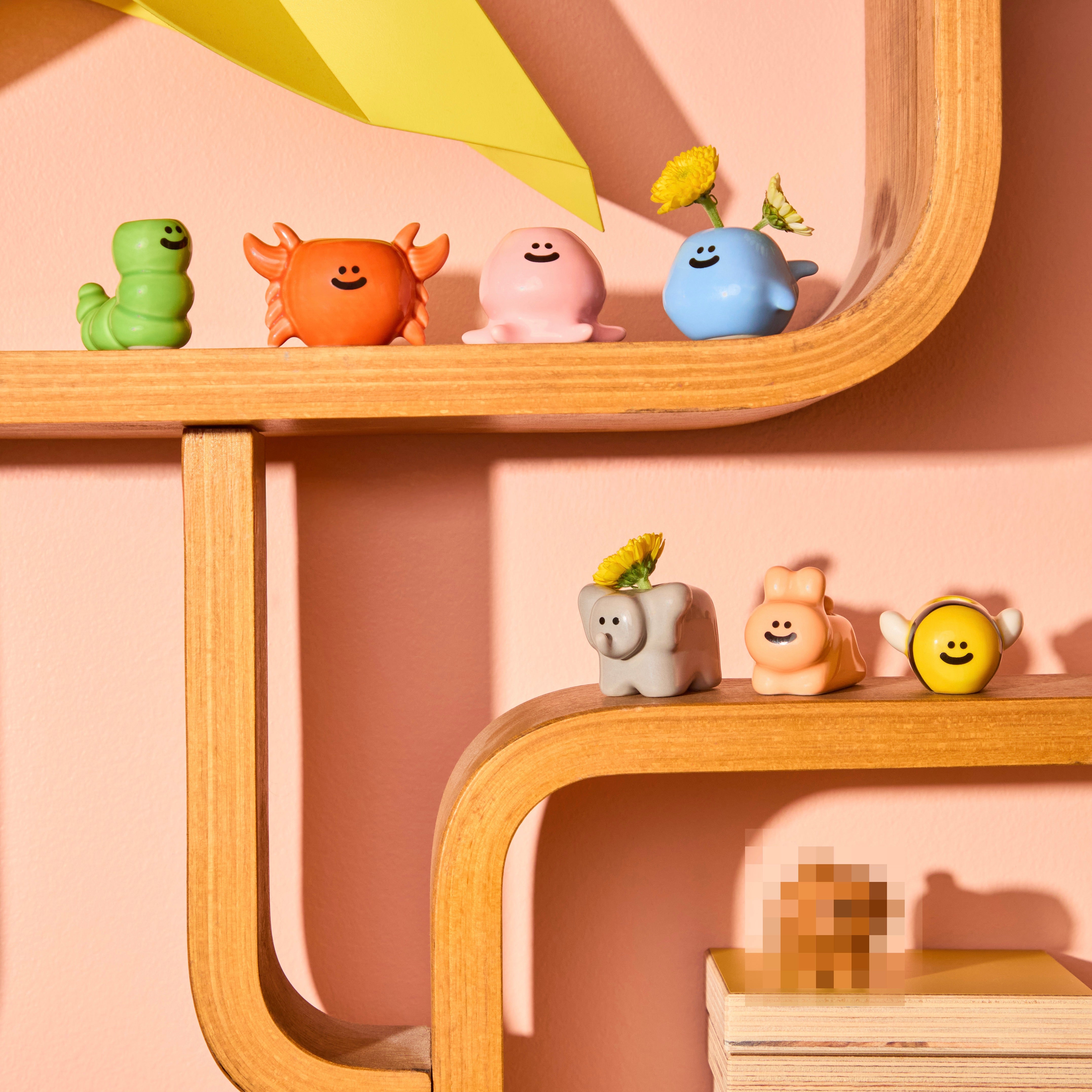 Diese Surprise Box enthält eine von mehreren Mini-Vasen mit Tiermotiv aus Keramik. Welche Figur sich in der Box befindet, bleibt bis zum Öffnen geheim und sorgt für einen spielerischen Sammelspaß. Die kleinen Tierformen sind dekorativ, farbenfroh und perfekt für kleine Blumen oder Trockenpflanzen.