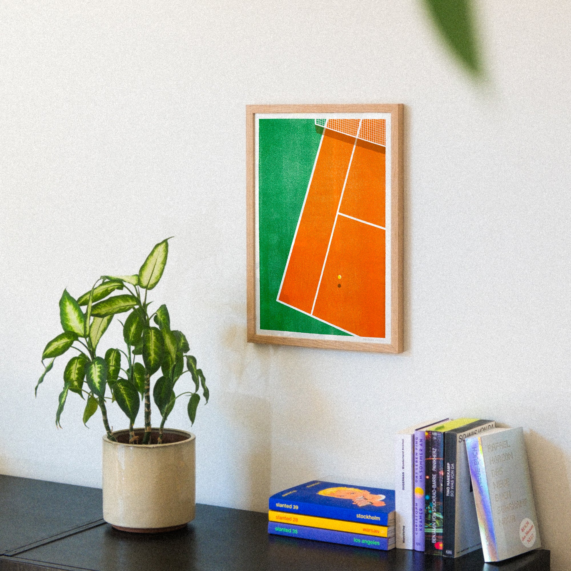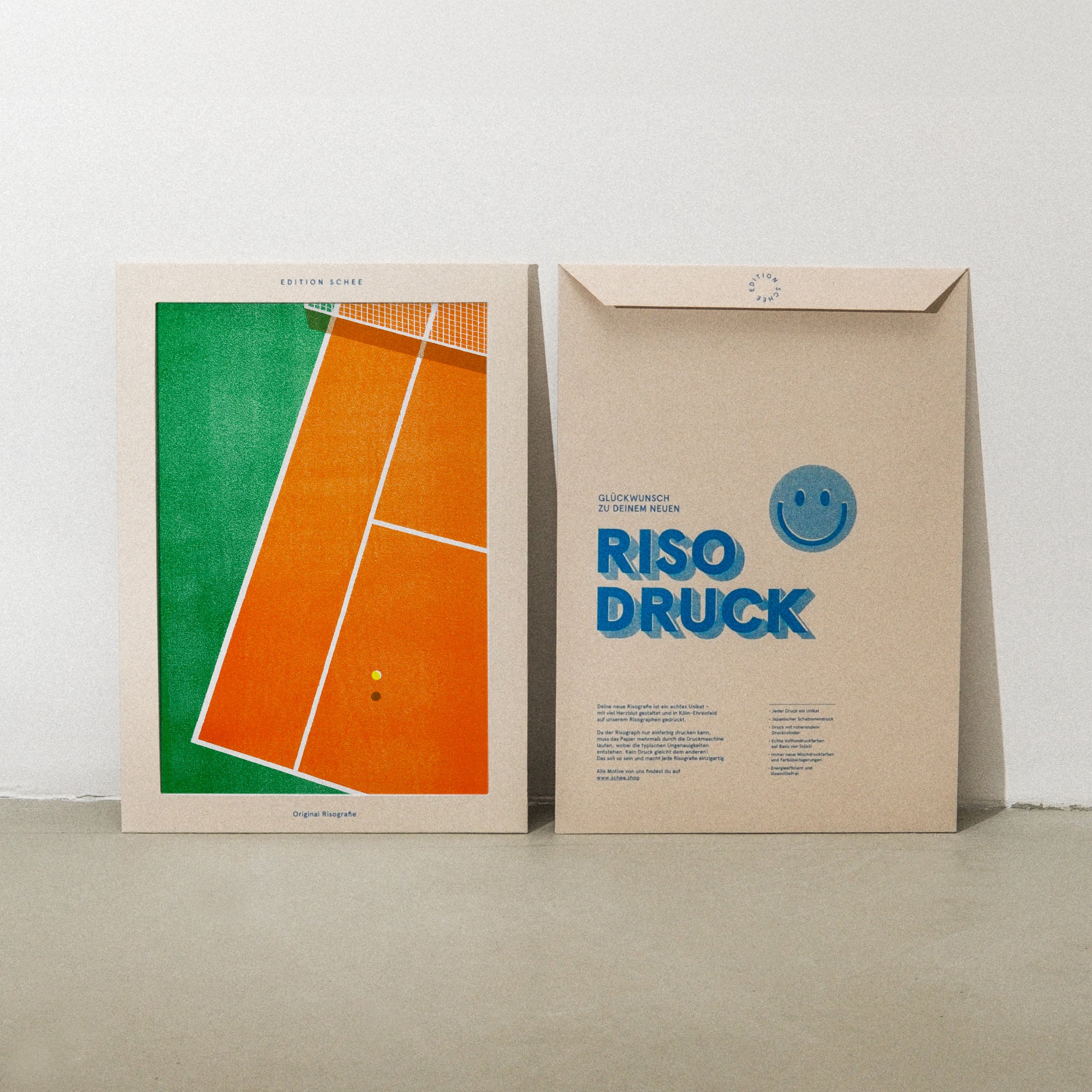Du spielst oder guckst gerne Tennis? Dann dürfte dieser Riso-Print im Format Din A3 ein Matchwinner für dich sein. Gedruckt auf unserem Risographen in Köln-Ehrenfeld – von Timo, der ziemlich tennisverrückt ist. Hol dir ein bisschen Tenniscourt-Feeling an eine deiner Wände.