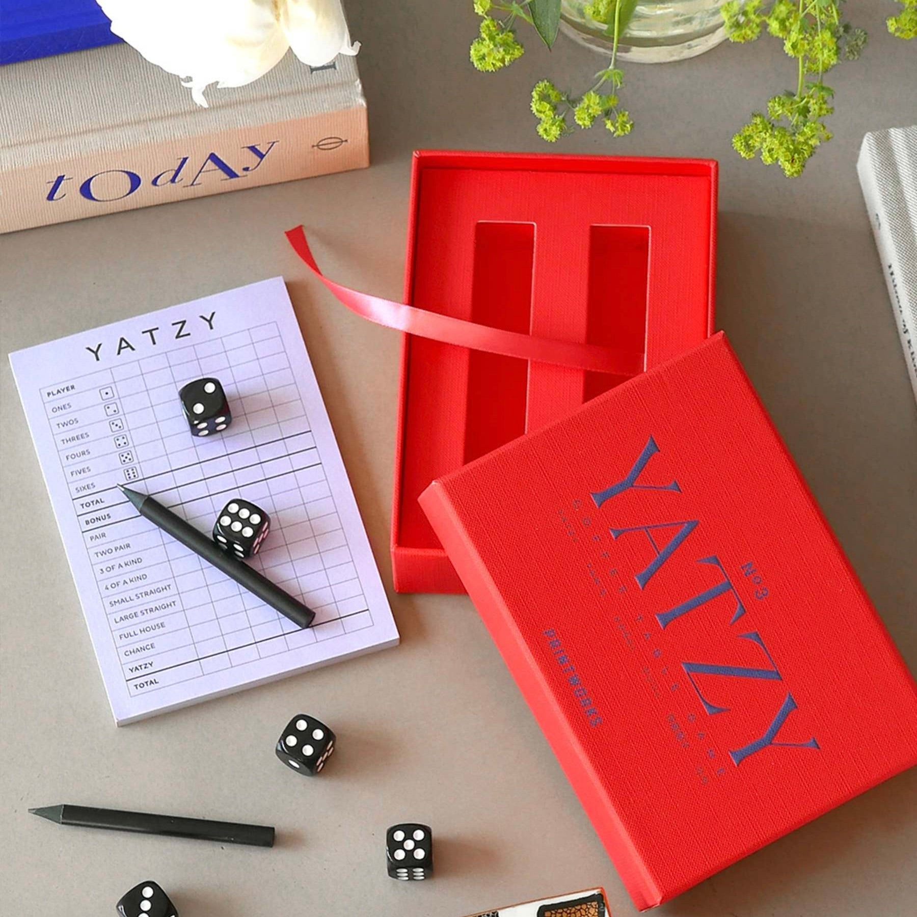 Manchmal braucht es nur fünf Würfel für einen perfekten Abend. „Classic Yatzy“ in kräftigem Rot bringt den beliebten Spieleklassiker in einer stilvollen Design-Edition auf deinen Couchtisch. Die hochwertige Box im Buchformat macht das Spiel nicht nur zu einem unterhaltsamen Begleiter, sondern auch zu einem echten Interior-Statement. Spielen, würfeln, ausstellen – alles geht.