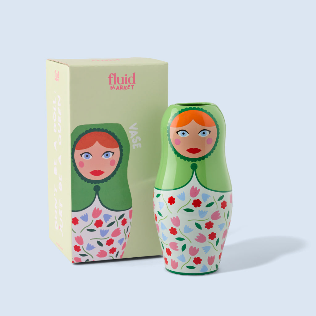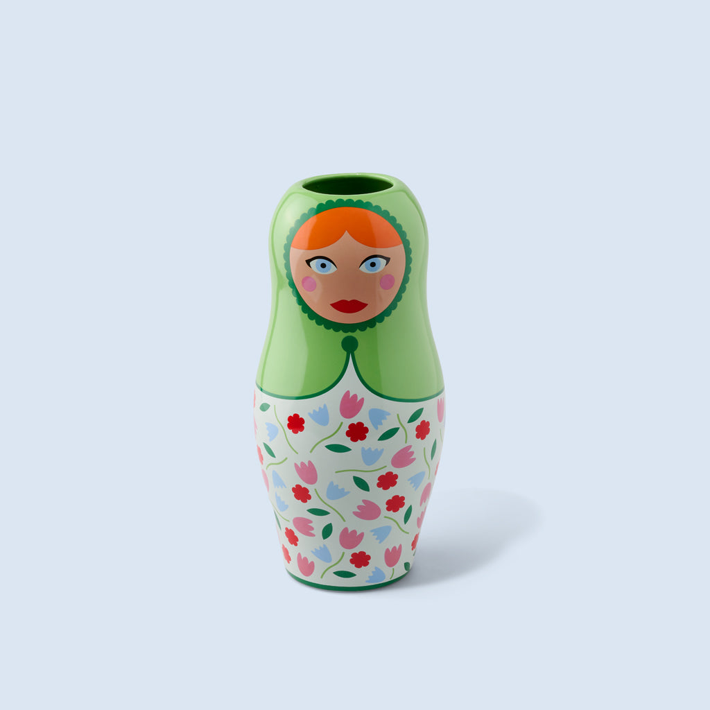 Diese Vase bringt Farbe und Charakter ins Zuhause, ohne laut zu sein. Die Puppenform kombiniert mit floralen Motiven wirkt verspielt, aber trotzdem ruhig genug für jeden Raum. Ein schönes Stück für alle, die Blumen mögen – und Design mit Persönlichkeit.